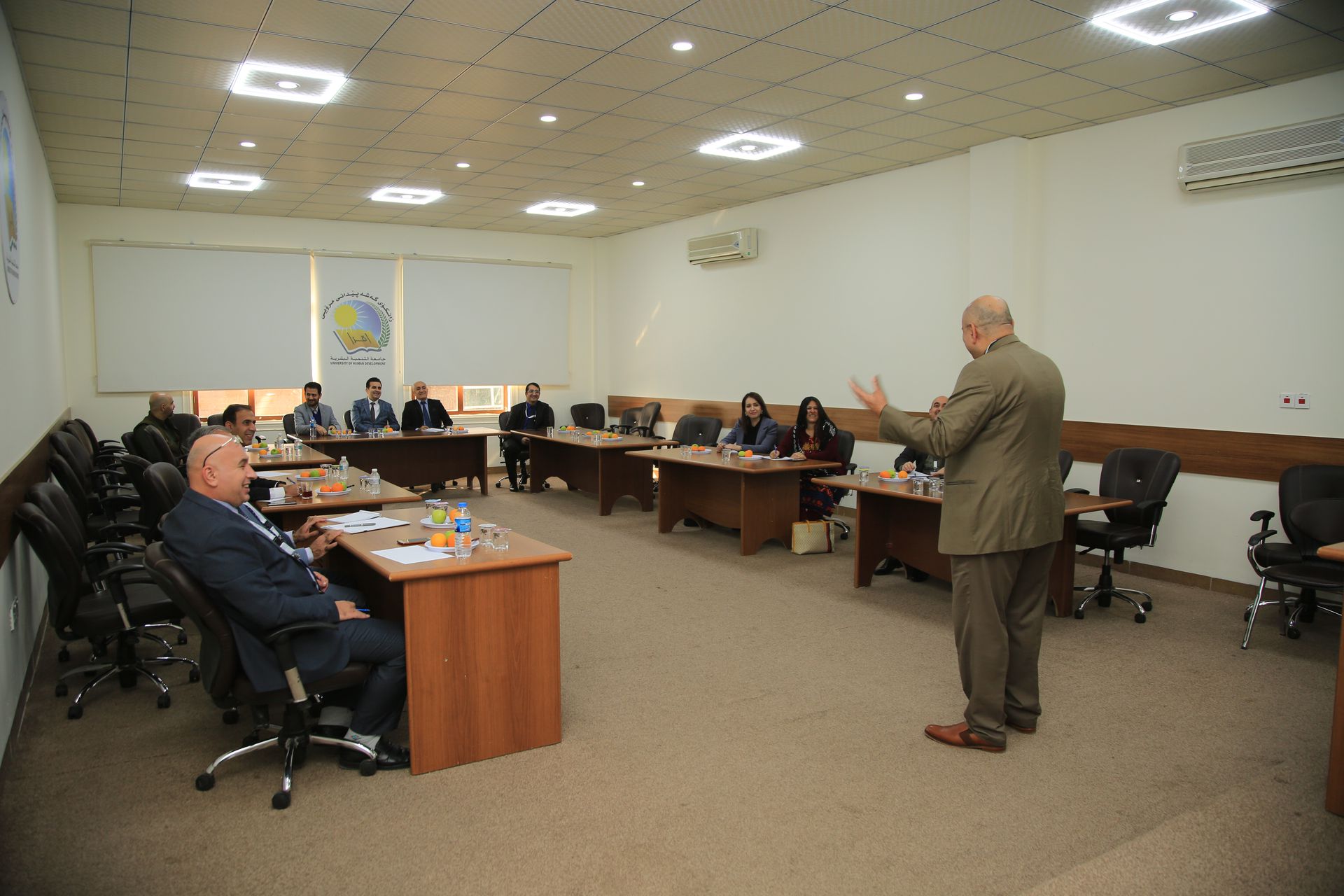 During the workshop, Dr Amr explained several themes related to peaceful intervention and conflict resolution. He used charts and diagrams to clarify his ideas. Many questions and comments were raised and made which all made the event very fruitful. Finally, the head of DCRT Prof. Dr Anwar Muhammad Faraj joined the event for awarding the attendees certificate of participation.