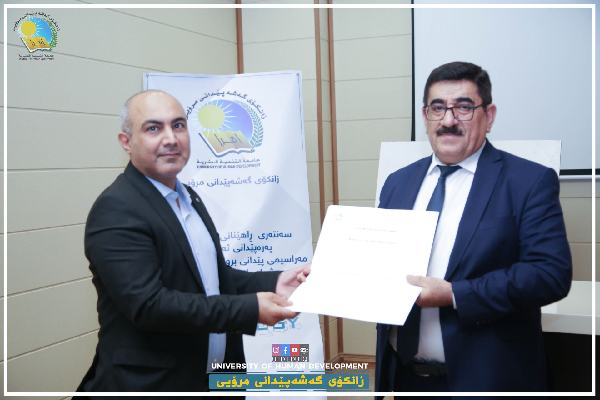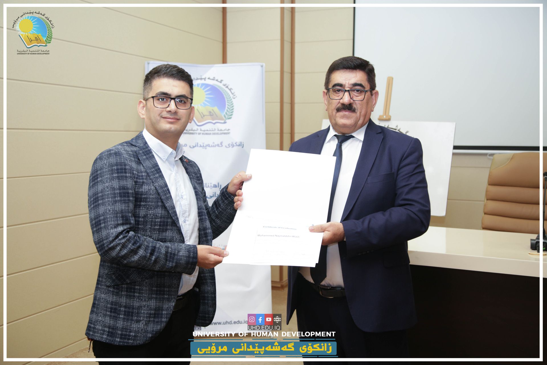 The Pedagogy and Academic Development Training Centre at the University of Human Development (UHD) held an award ceremony for its fourth-generation graduates on 24th November 2021. A total of 25 students received certificates which means that they are now officially qualified to teach at public or private universities in the Kurdistan Region of Iraq.