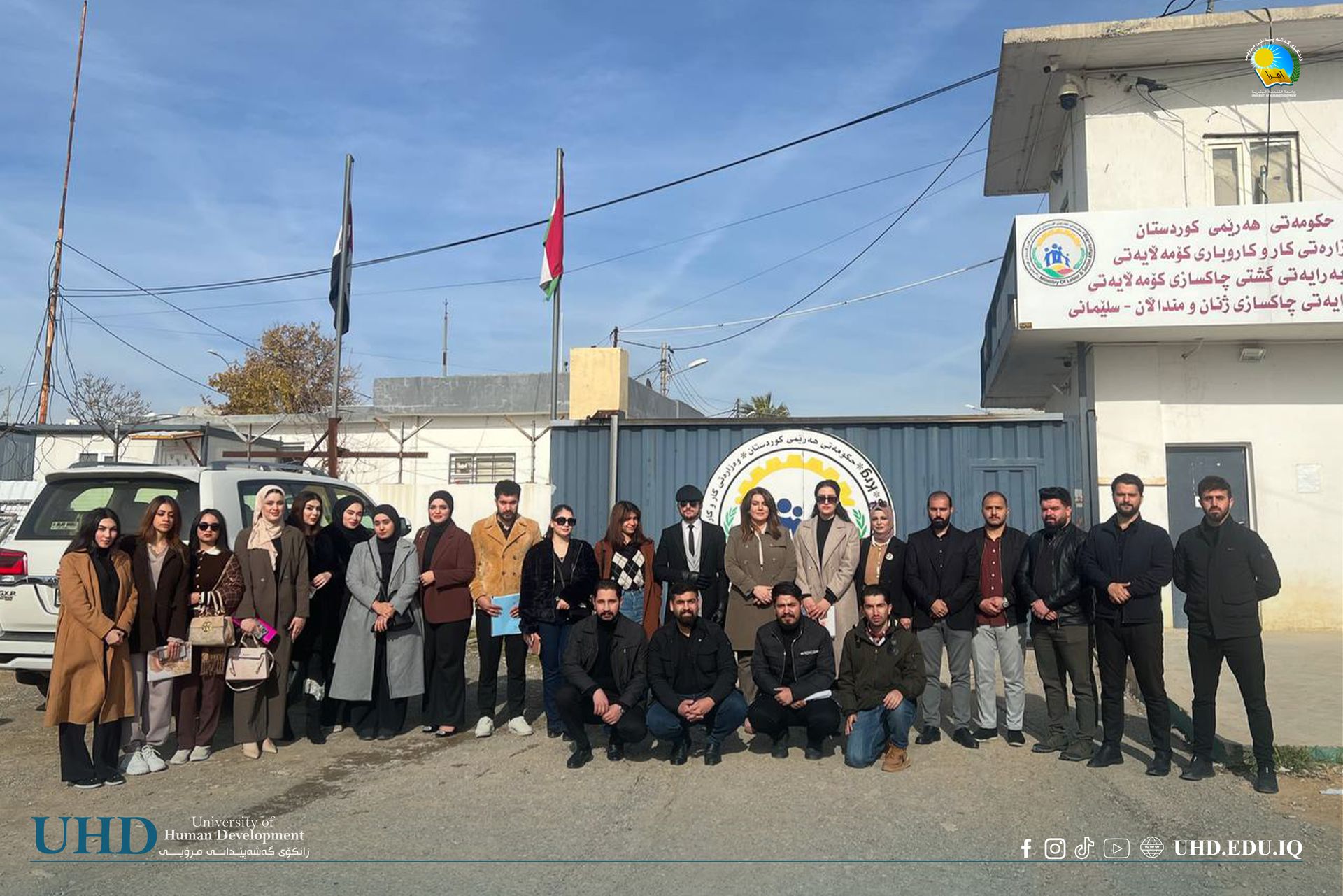 Students of Year 5 in the Department of Law at the University of Human Development visited the Correctional Facility for Women and Children in Sulaymaniyah on 23 December 2025, as part of their annual field trips to various government facilities, such as the parliament, the court, and the prisons. The aim is to obtain further knowledge about law-making, law implementation, and the role of the court in settling disputes, punishing, and correcting wrongdoers.