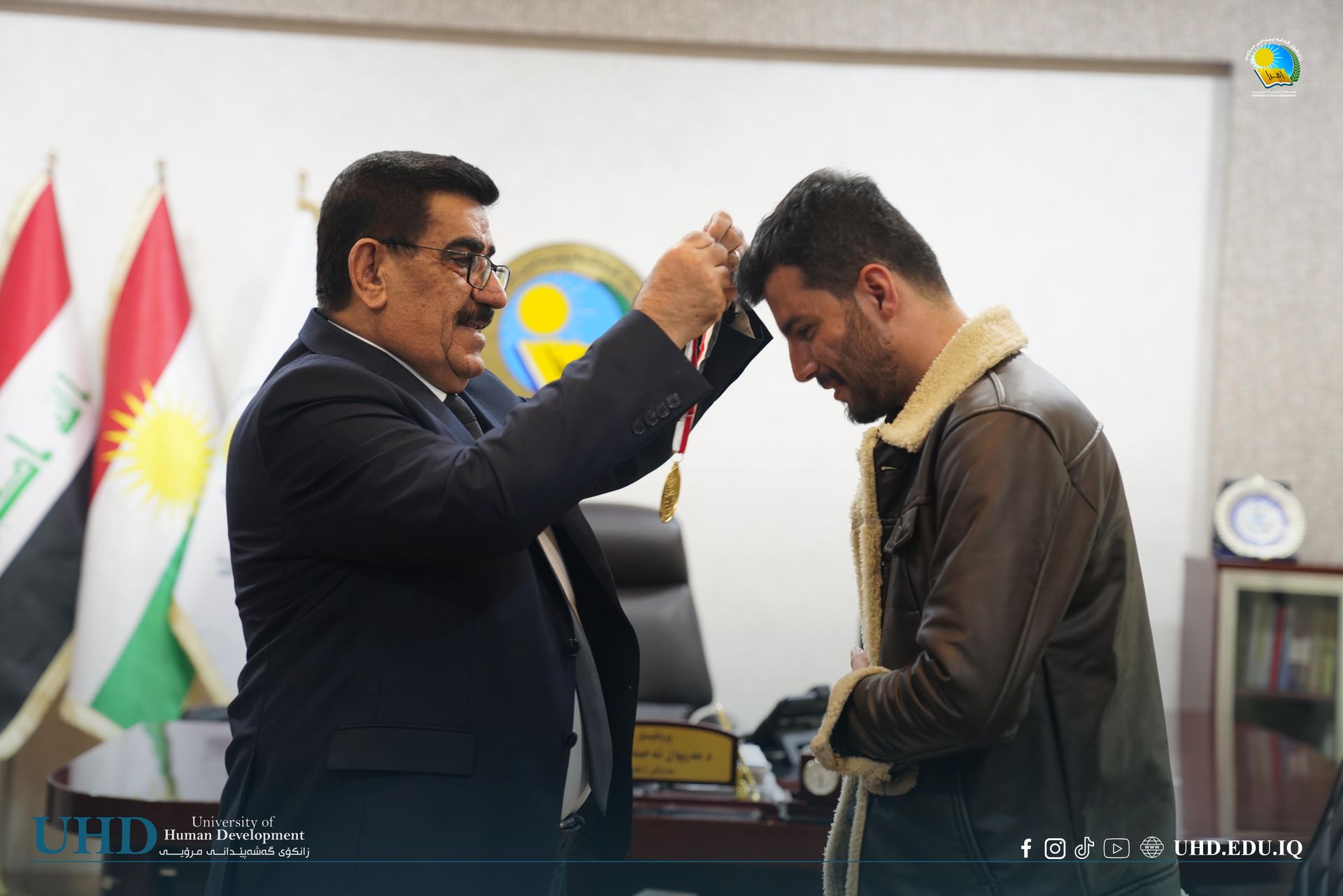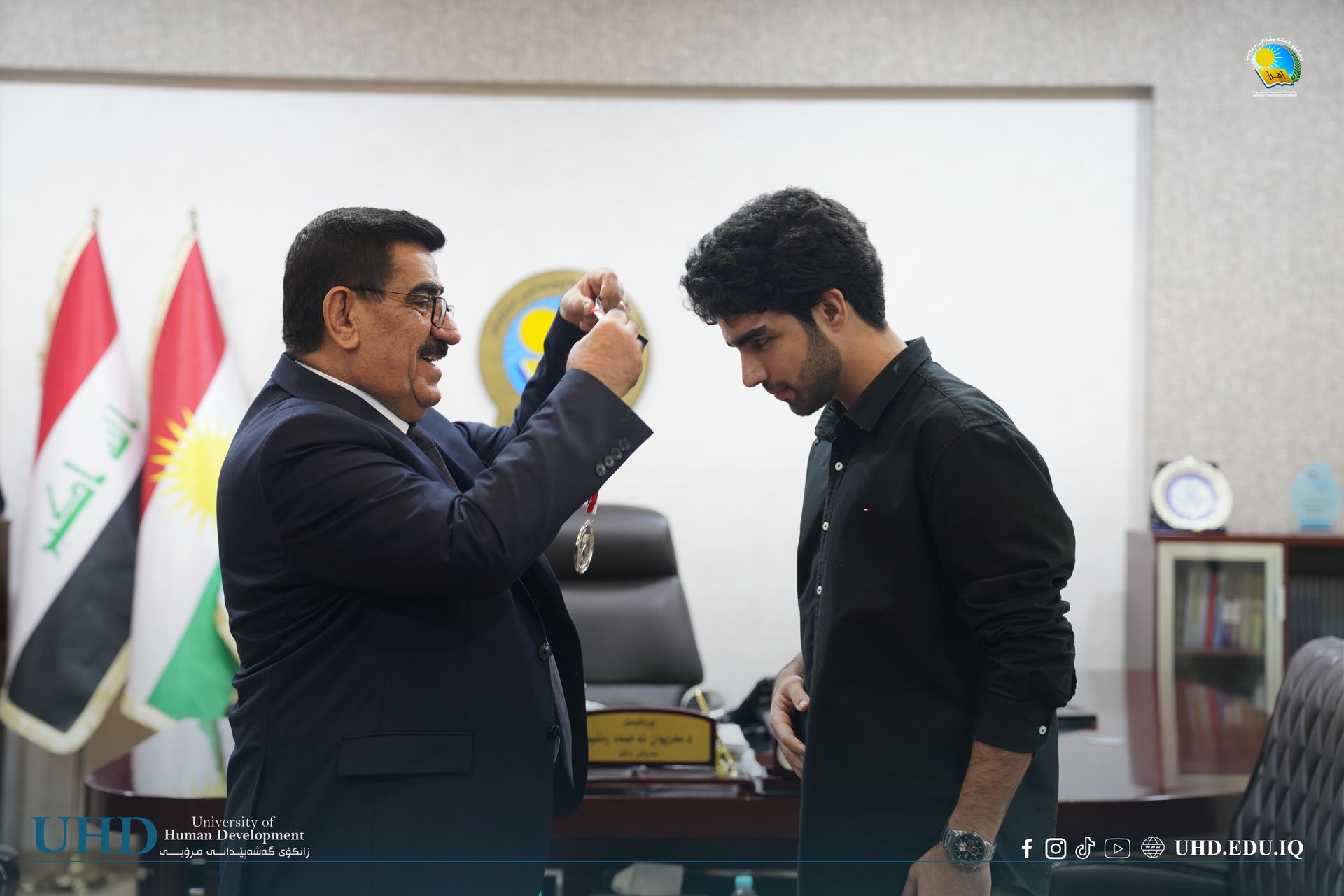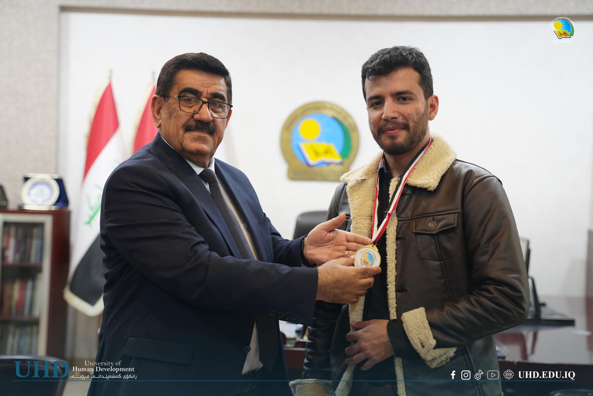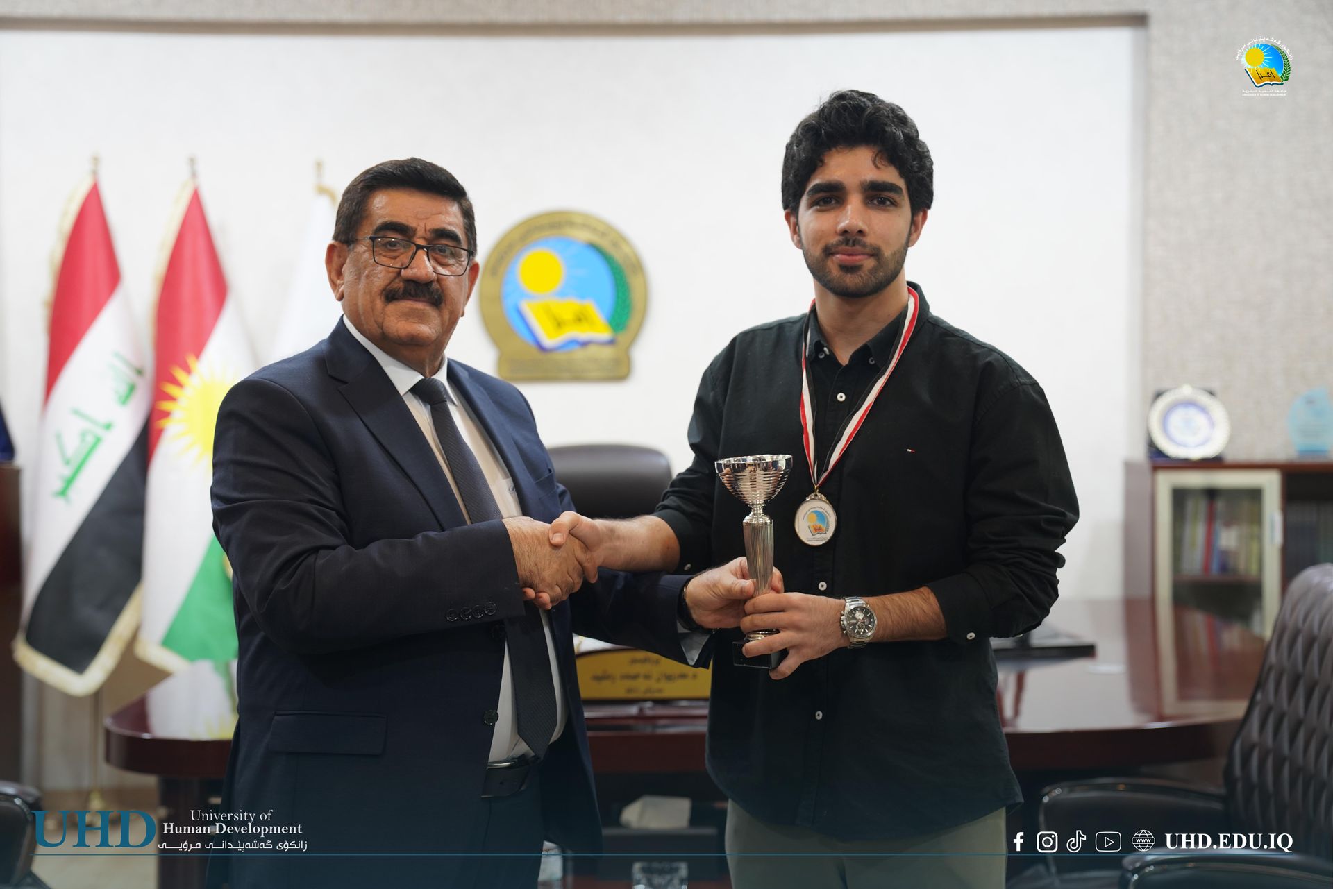 University President Professor Dr Mariwan Ahmed Rasheed presided over the awards ceremony, congratulating the finalists and presenting medals and trophies. He was joined by several university leaders, including Assistant President for Financial Affairs, Asst Prof. Dr Hiwa Abubakir Ali; Assistant President for Scientific Affairs, Prof. Dr Anwar Muhammed Faraj; and the Dean of the College of Law and Politics, Asst Prof. Dr Kannan Hamagharib Abdullah.