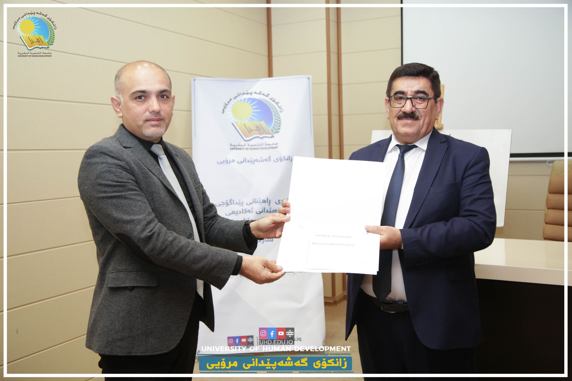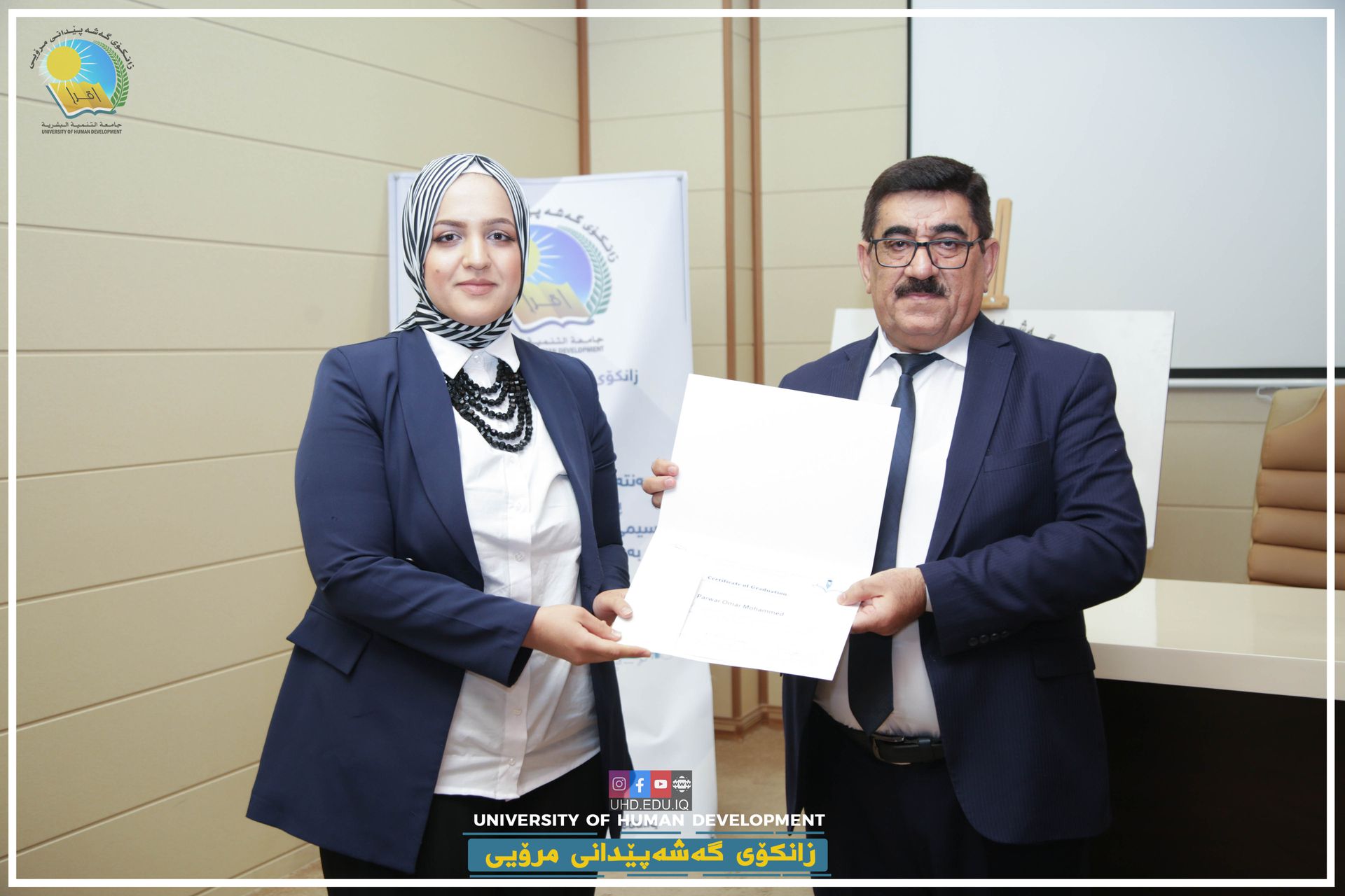 The Pedagogy and Academic Development Training Centre at the University of Human Development (UHD) held an award ceremony for its fourth-generation graduates on 24th November 2021. A total of 25 students received certificates which means that they are now officially qualified to teach at public or private universities in the Kurdistan Region of Iraq.