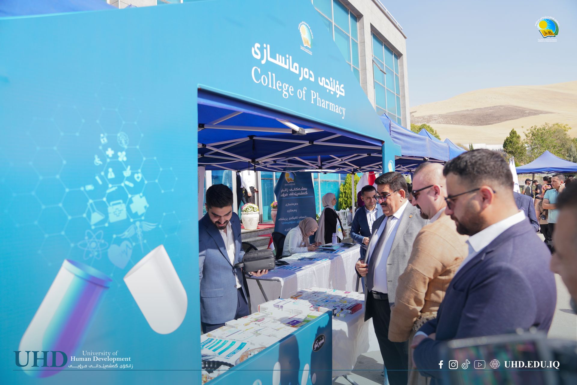 The university president, Prof. Dr Mariwan Ahmed Rasheed, accompanied by members of the Presidential Council and several lecturers, opened the event at around 12 pm and toured the area. He expressed his appreciation to the people involved in organising the event and wished everyone a happy time.