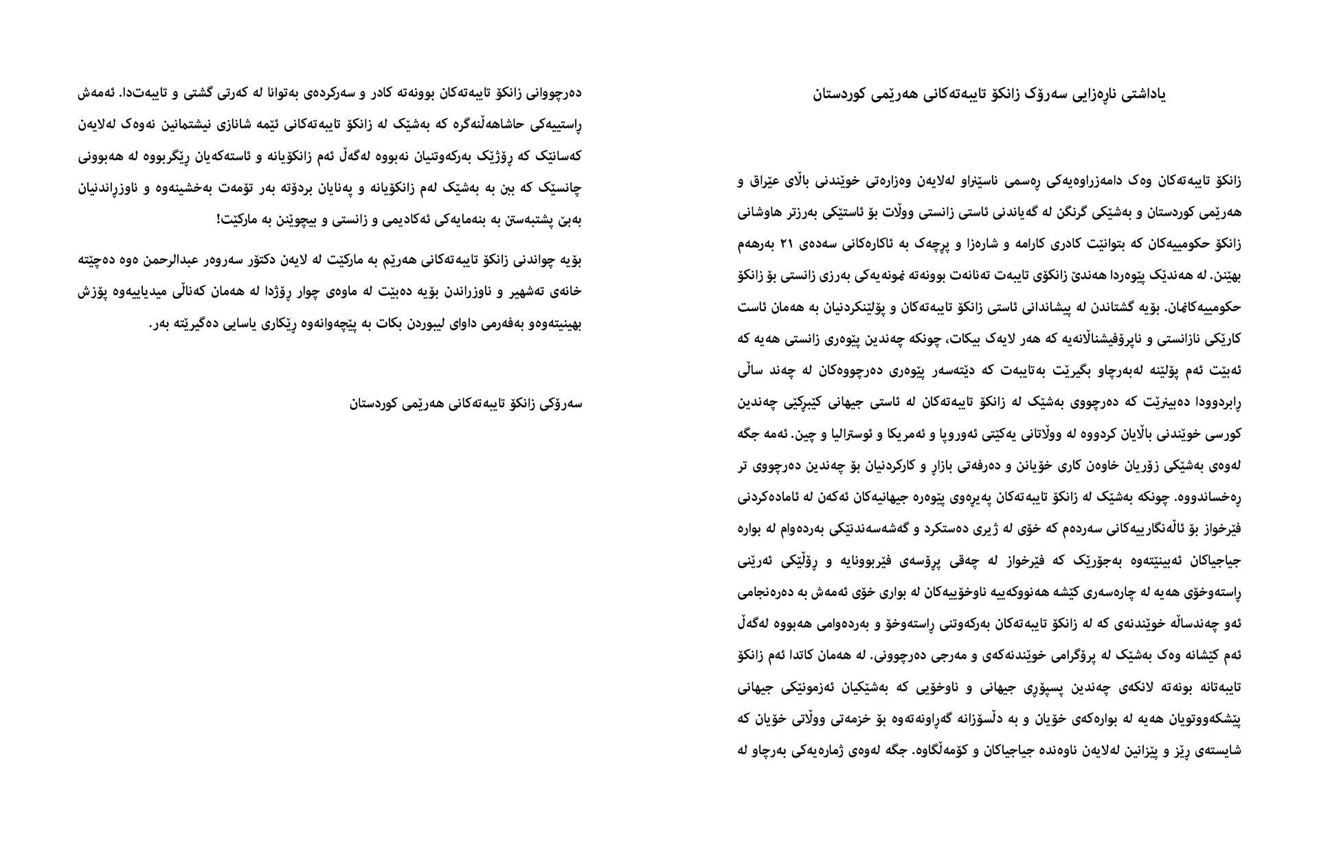 It is unfortunate that recently, in a TV debate, Dr Sarwar Abdulrahman compared private universities to 'markets'. We consider this defamation. Therefore, he will have four days to apologise on the same TV channel; otherwise, we will take legal action.